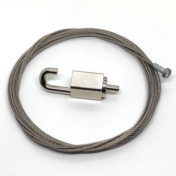 تشمل الاستخدامات: تعليق الإضاءة، واللافتات، والأعمال الفنية، والأرفف، وما إلى ذلك. يوفر نظامًا قويًا وموثوقًا به وقابلًا للتعديل. أدخل الحبل السلكي وحرك المشبك إلى الموضع المطلوب. للتعديل، ما عليك سوى الضغط على الغطاس بإصبعك وتحريك التركيب إلى موضع مختلف على السلك.
